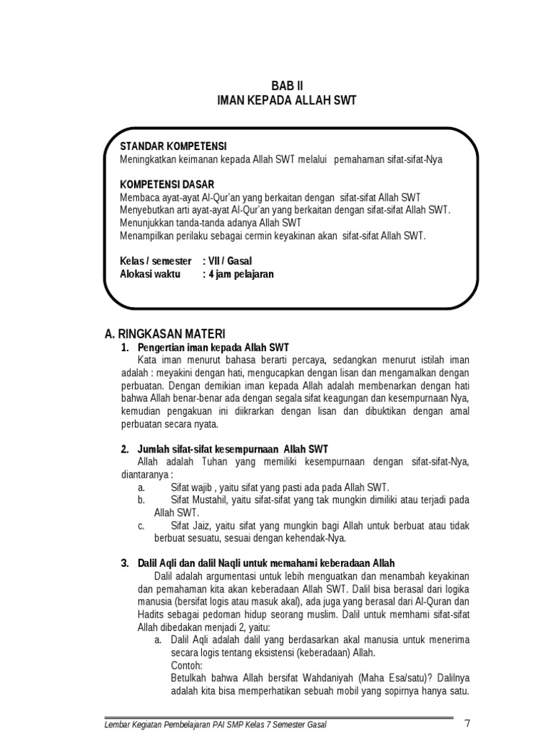 Bab 2 Sifat Sifat Allah Dan Pembagiannya Madrasah Tsanawiyah Kelas Vii