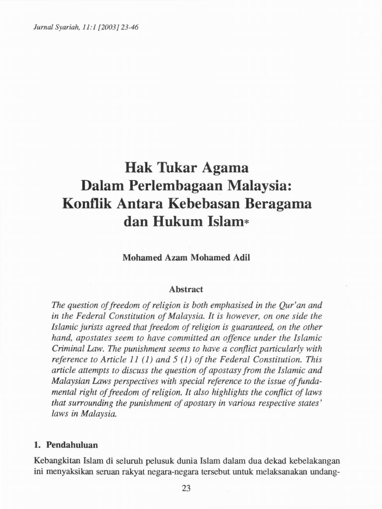 2 Hak Tukar Agama Dalam Perlembagaan Malaysia Konflik Antara Kebebasan Agama Dan Hukum Islam Ms 23 46