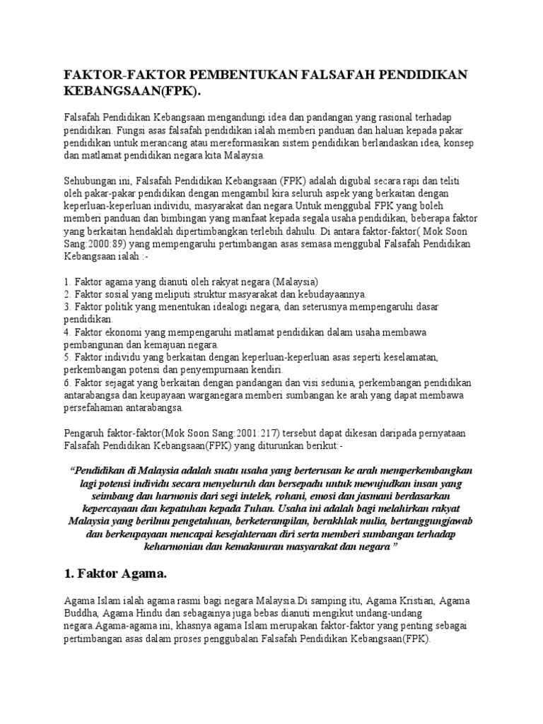 Faktor Faktor Pembentukan Falsafah Pendidikan Kebangsaan Fpk