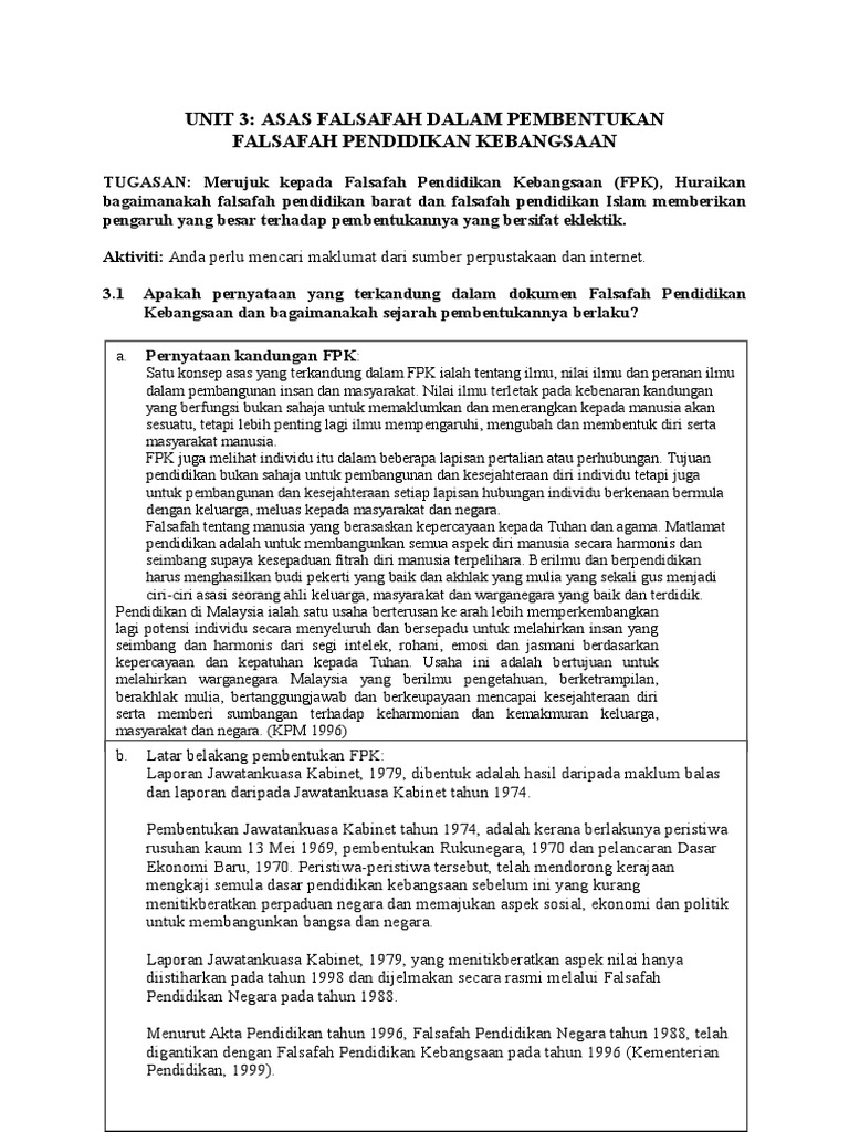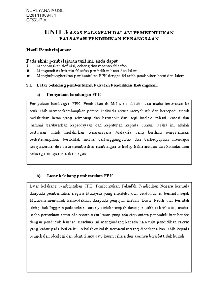 Unit 3 Asas Falsafah Dalam Fpk Group B Nama Nur Ayuni Binti Abdul Rahim No Matrik D20141066438 Unit 3 Asas Falsafah Dalam Pembentukan Falsafah Course Hero