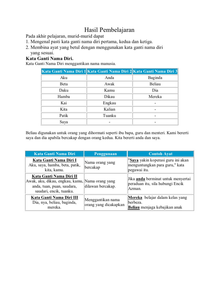 Kata Ganti Nama Lessons Tes Teach