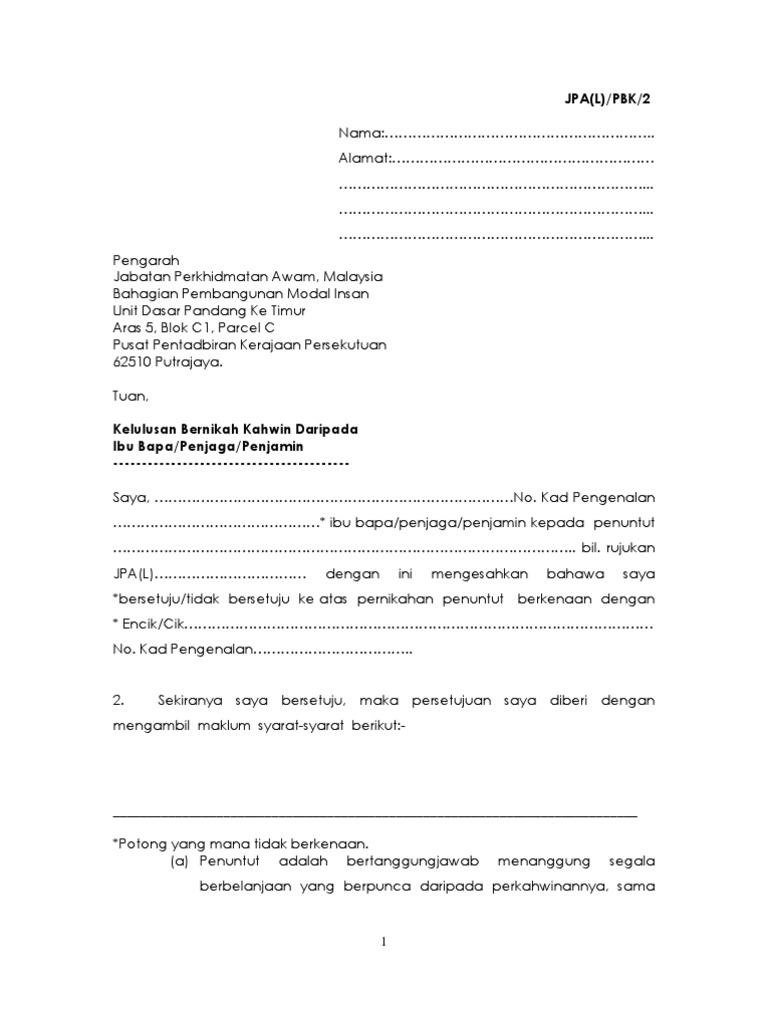 Borang Nikah Kahwin Jpa L Permohonan Penjamin