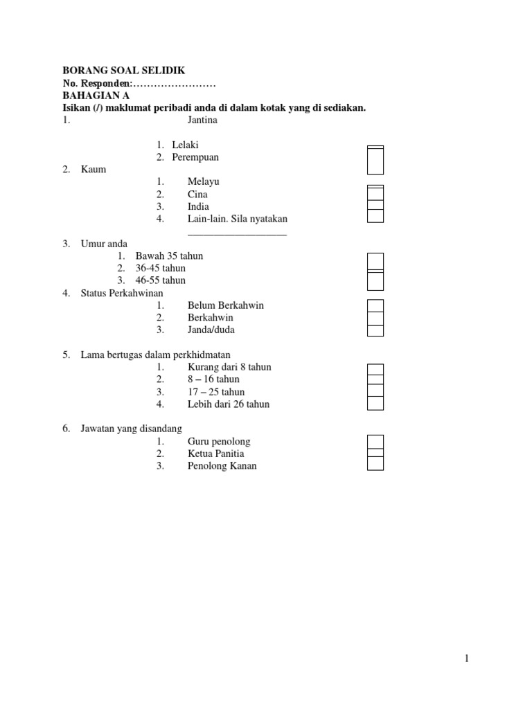 Borang Soal Selidik Kepimpinan Guru Besar Cute766