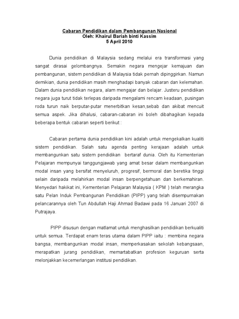 Cabaran Pendidikan Dalam Pembangunan Nasional