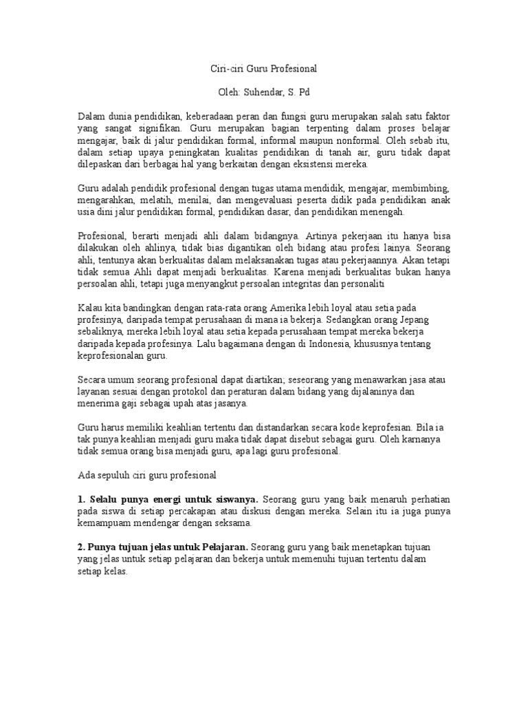 Ciri Ciri Jabatan Profesional Seorang Guru Juragan Desa