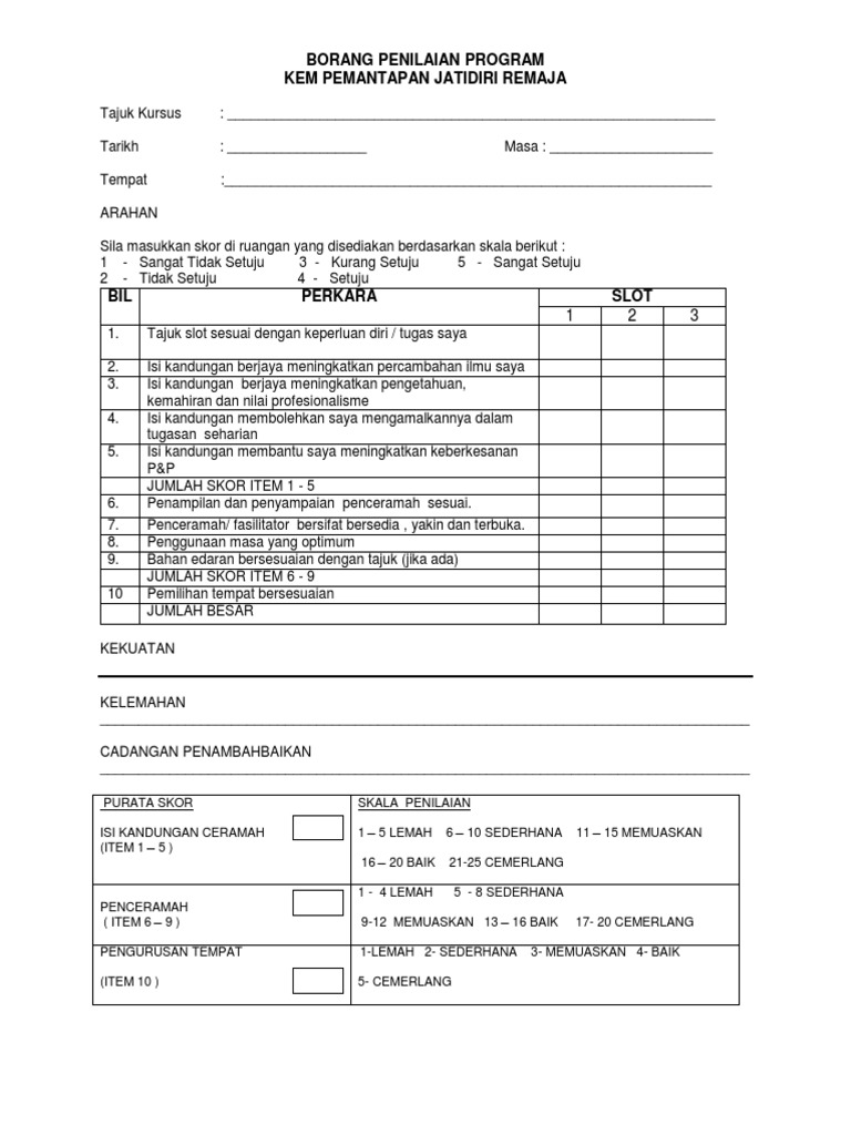 Doc Contoh Borang Penilaian Keberkesanan Latihan Dky Jerry Academia Edu