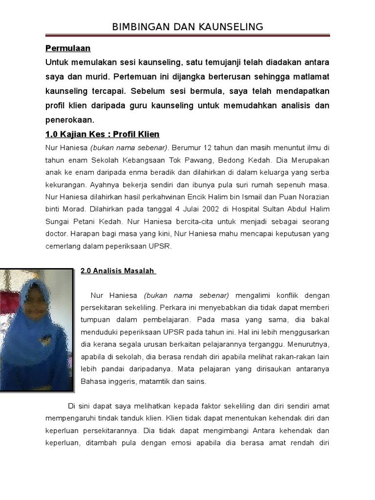 Pdf Laporan Kaunseling Kes Klien