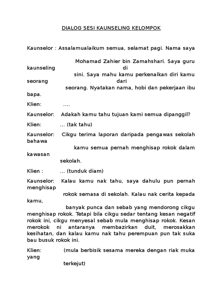 Dialog Sesi Kaunseling Kelompok