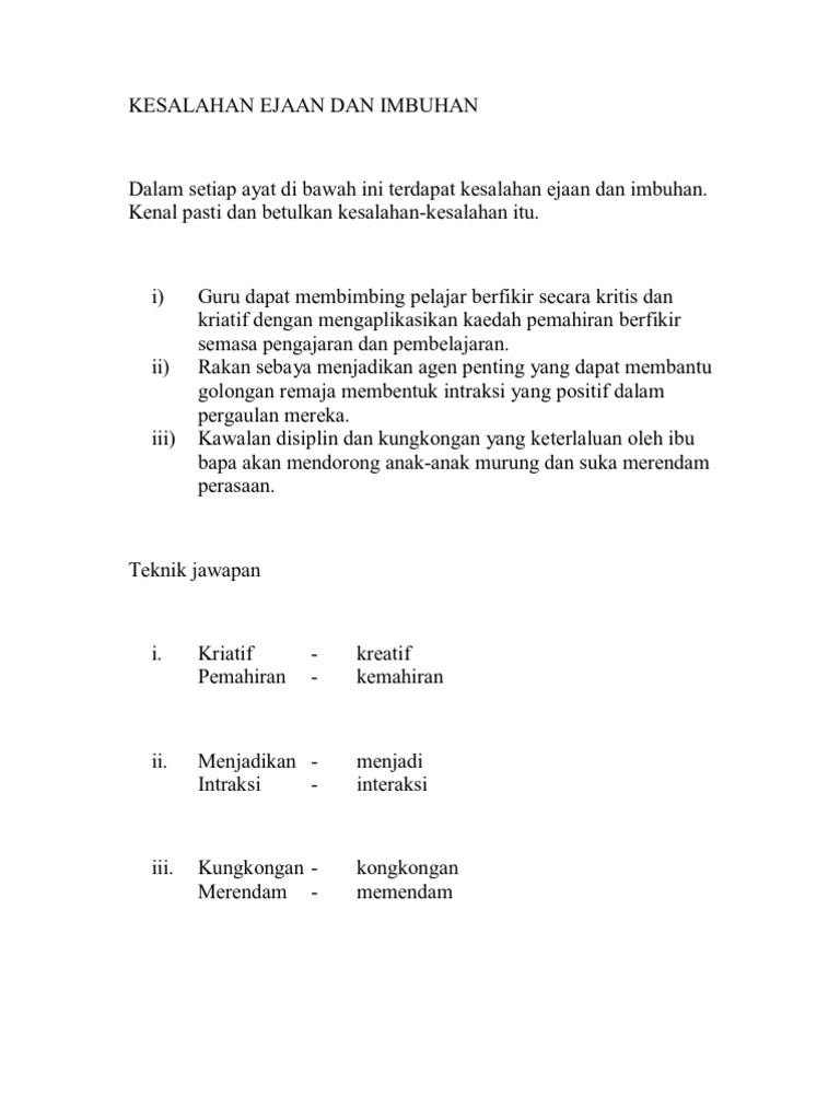 Contoh Soalan Kesalahan Ejaan Dan Imbuhan Spm Soalan Bo