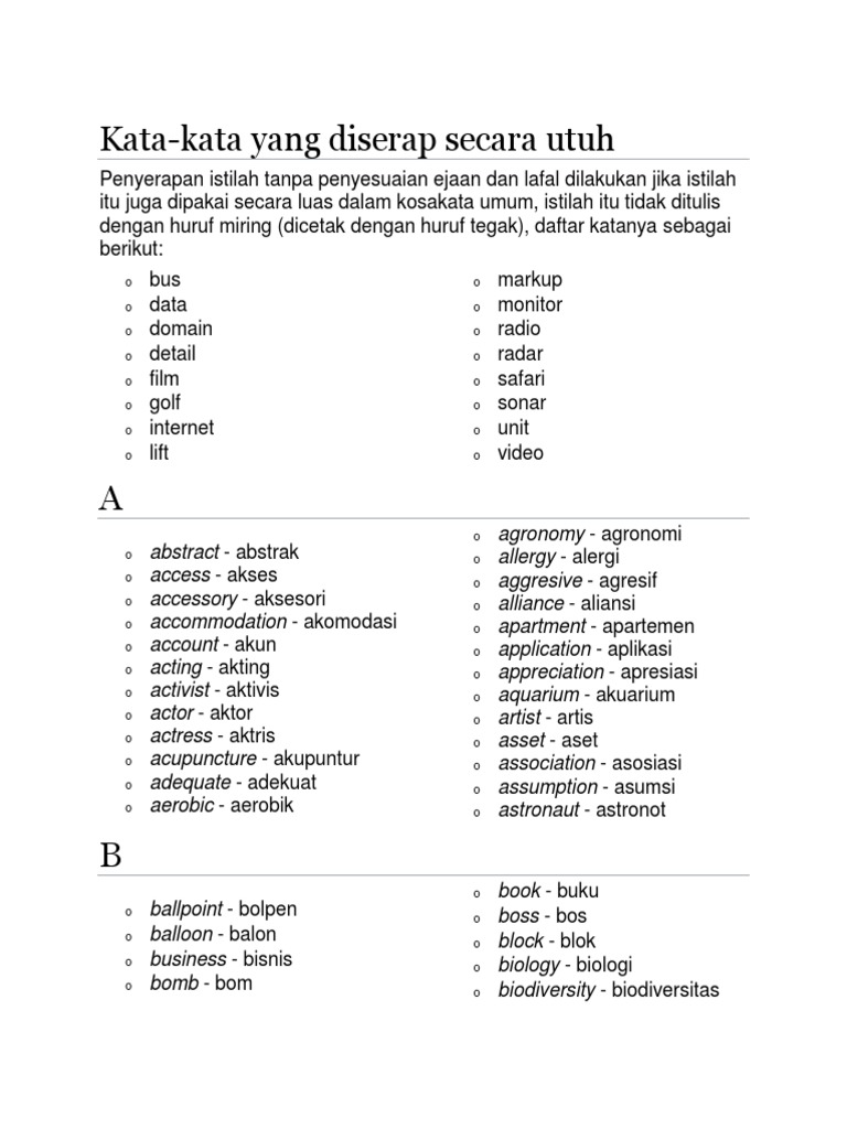 Kosa Kata Bahasa Indonesia Penjelasan Dan Contohnya