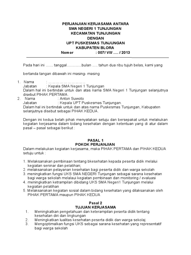 Contoh Mou Sekolah Dengan Puskesmas Selalu Belajar