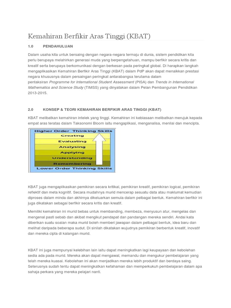 Kemahiran Berfikir Aras Tinggi Kbat 1 0 Pendahuluan