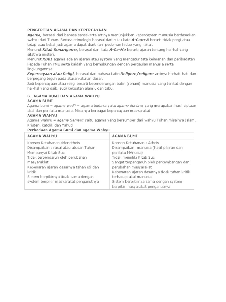 Pengertian Agama Dan Kepercayaan Pengenalan