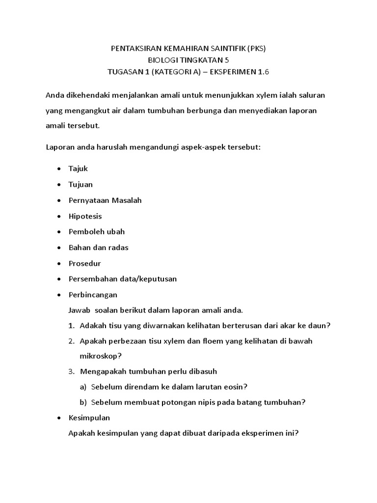 Biologi Eksperimen 6 Kertas 3 Tingkatan 5