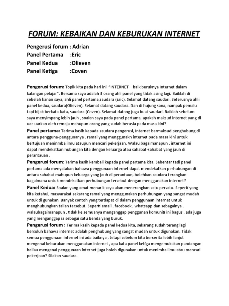 Contoh Forum Kebaikan Dan Keburukan Internet Rasmi V