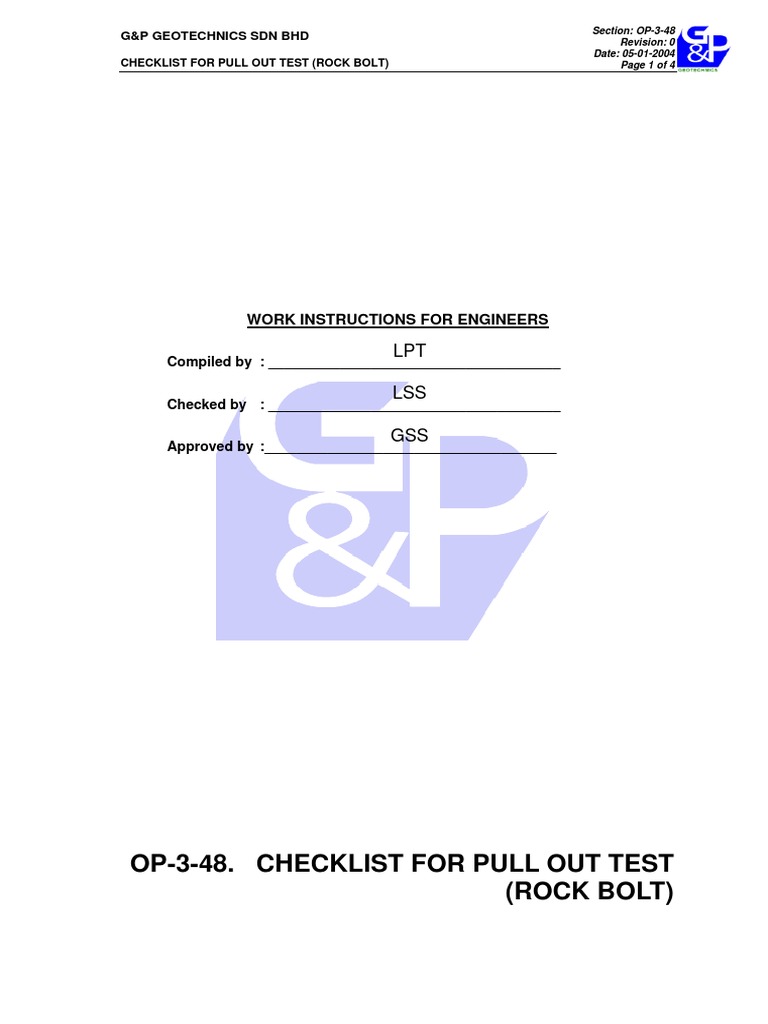 Checklist For Rock Bolts Pdf