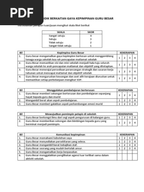 Soal Selidik Berkaitan Gaya Kepimpinan Guru Besar Skala Skor