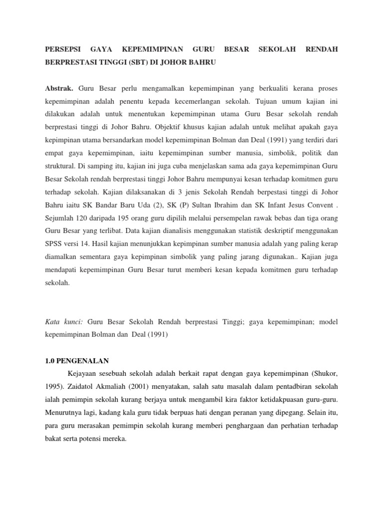Persepsi Gaya Kepemimpinan Guru Besar Sekolah New 1