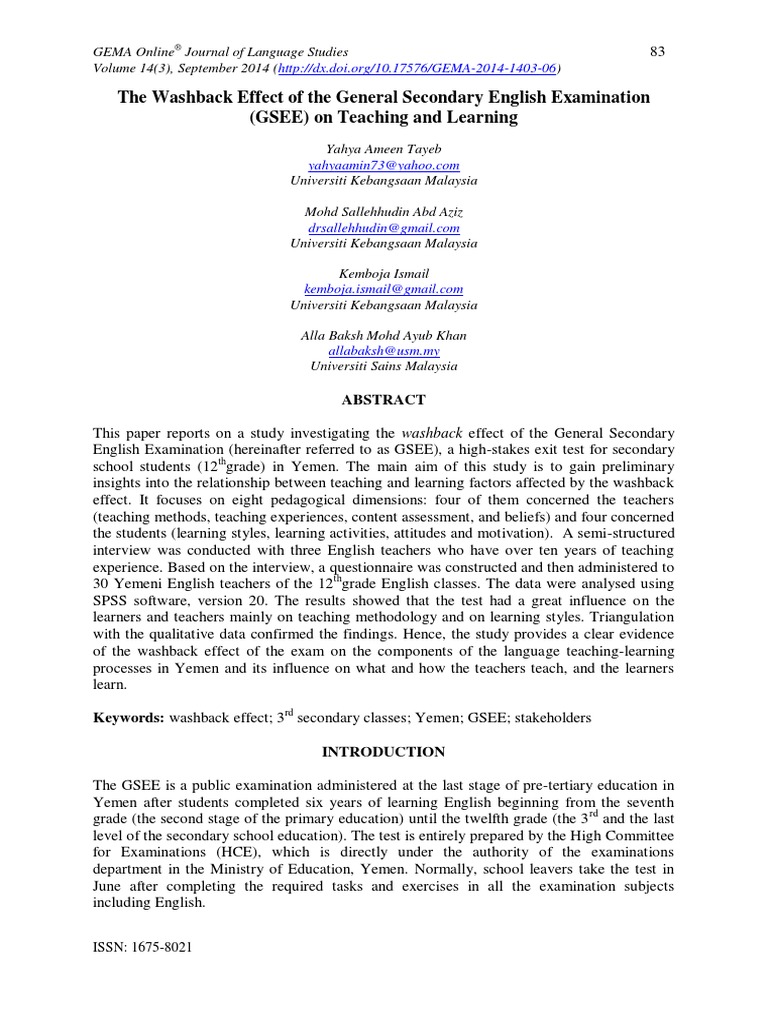 The Washback Effect Of The General Secondary English Examination Gsee On Teaching And Learning Teaching Method Teachers