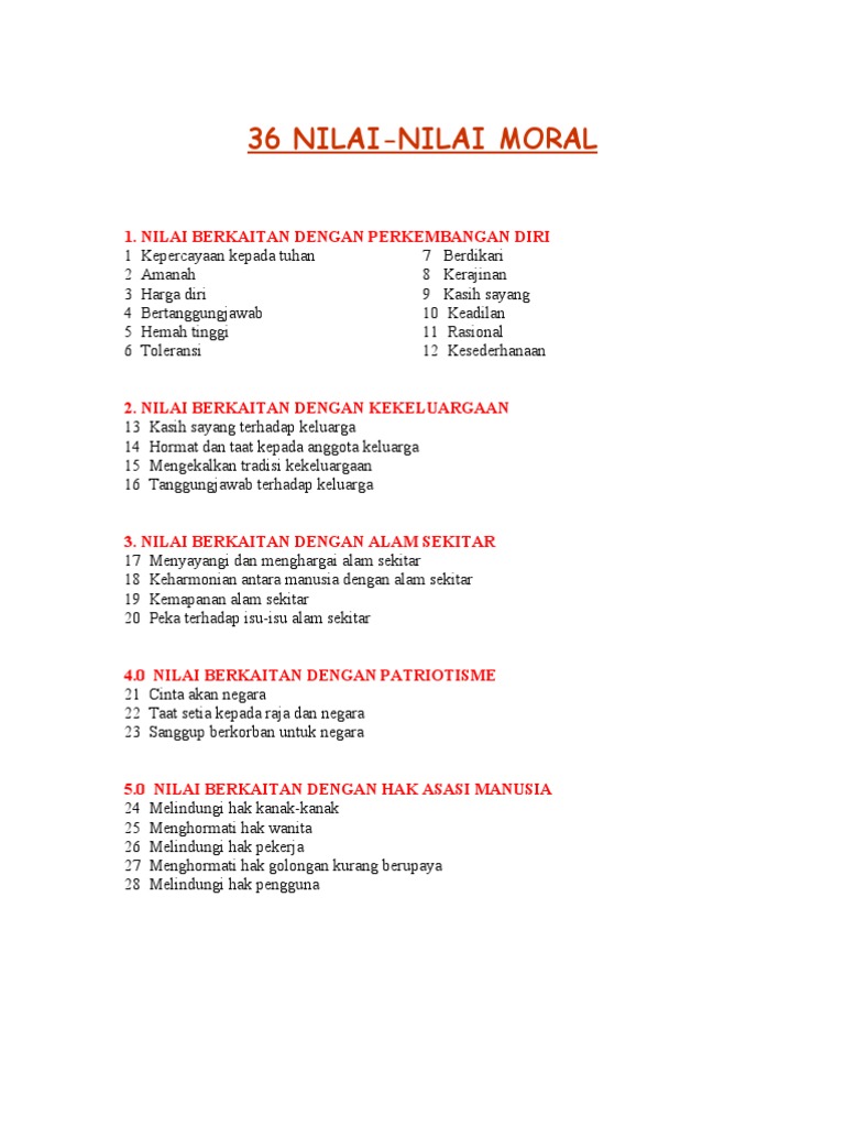36 Nilai Nilai Moral 1 Nilai Berkaitan Dengan Perkembangan Diri