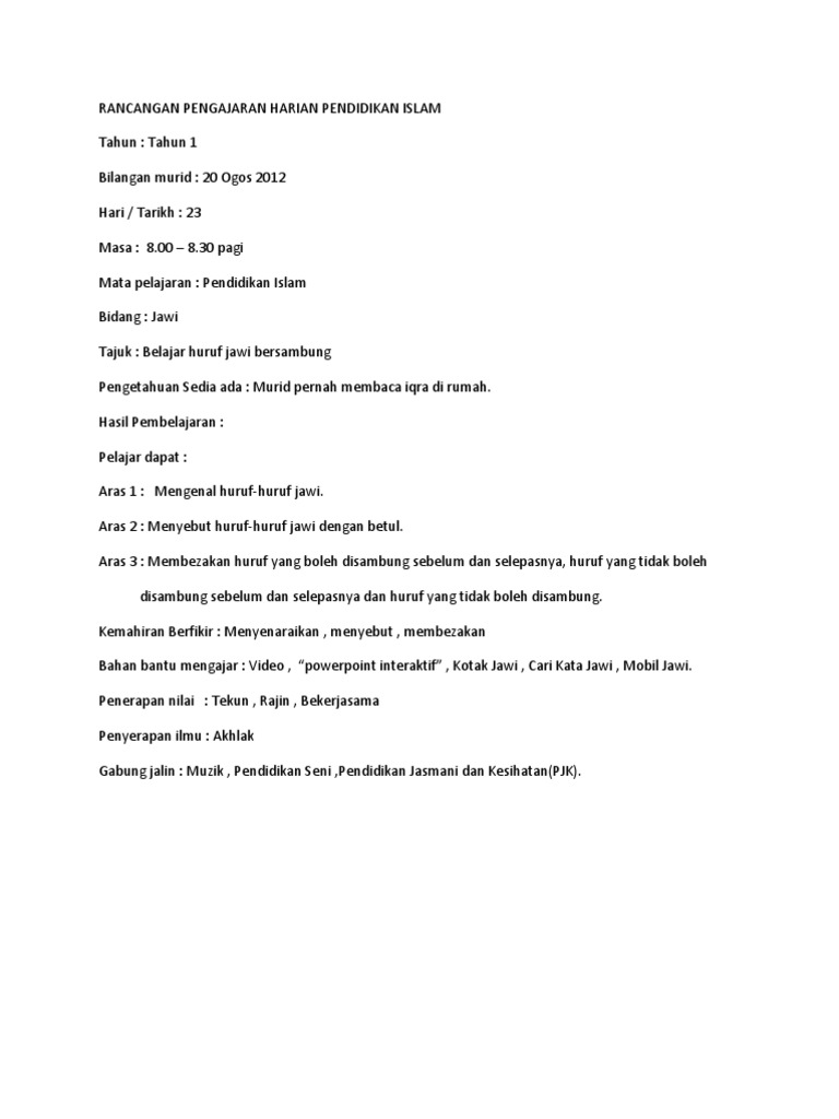 Rancangan Pengajaran Harian Pendidikan Islam Tahun Tarikh Hari 4 Jamadilawal 1436h 23 Februari 2015 Isnin Pdf Free Download