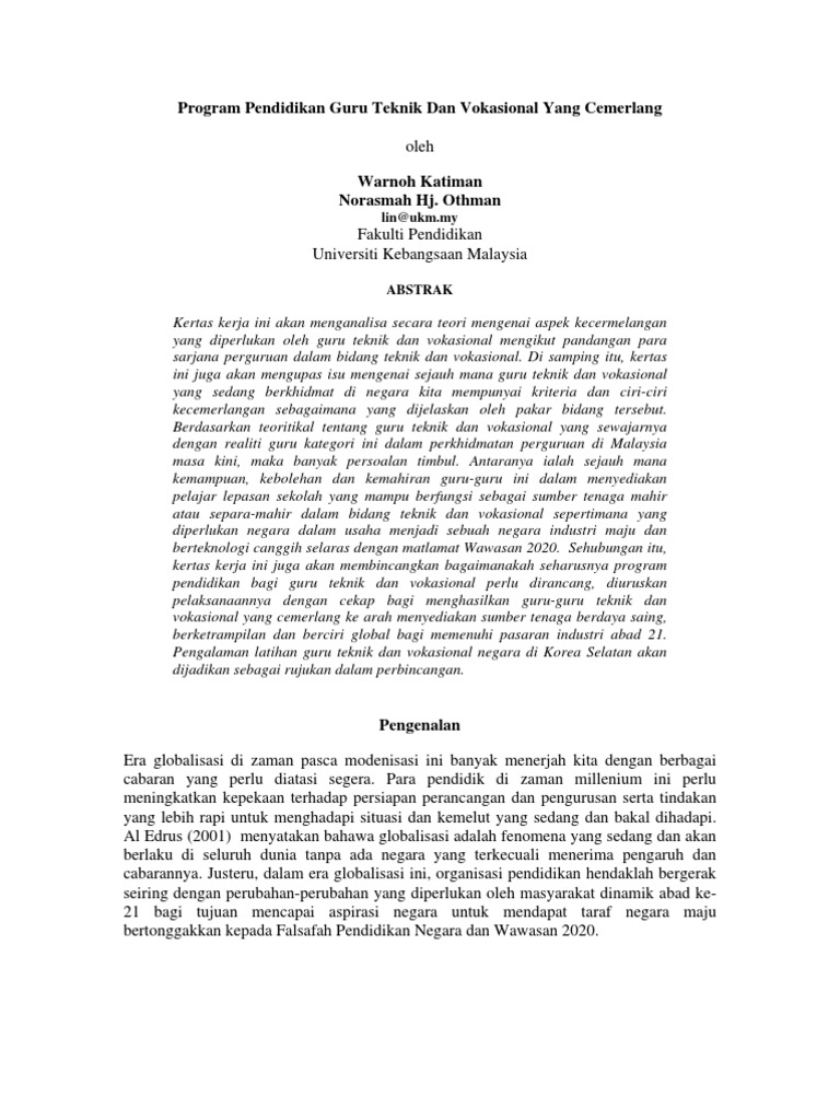 Pdf Menerokai Dimensi Guru Teknikal Dalam Sistem Pendidikan Teknikal Dan Vokasional