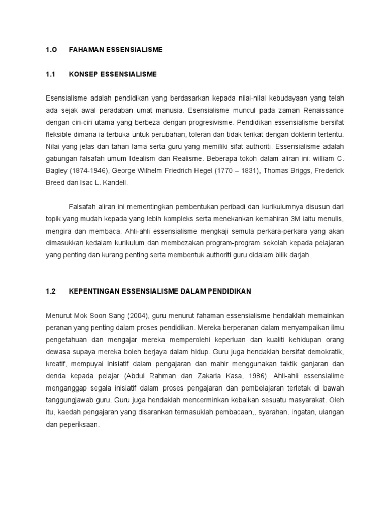 Assignmt Essensialisme N Perenialisme
