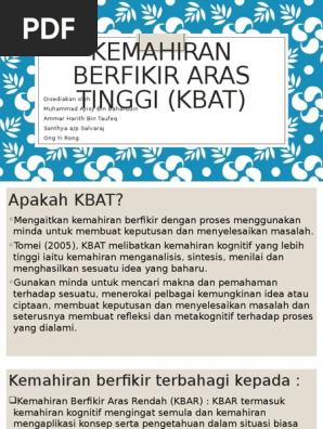 Kemahiran Berfikir Aras Tinggi Kbat Ppt Download