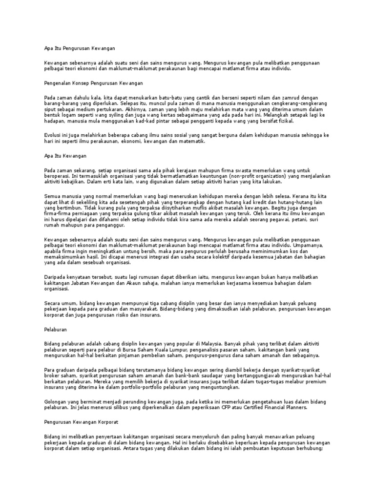 Apa Itu Pengurusan Kewangan