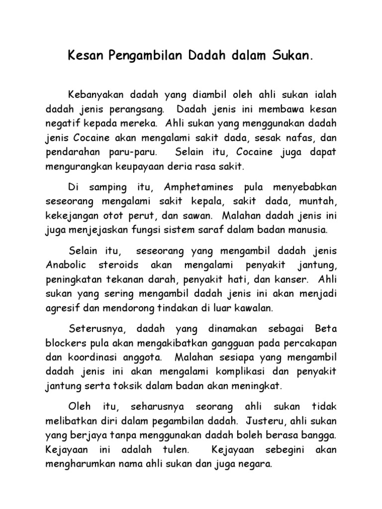 Kesan Pengambilan Dadah Dalam Sukan