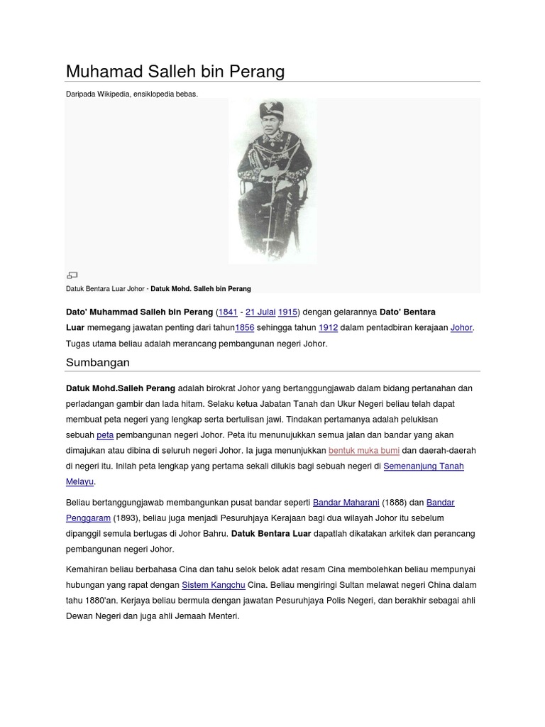 Muhamad Salleh Bin Perang Wikipedia Bahasa Melayu Ensiklopedia Bebas
