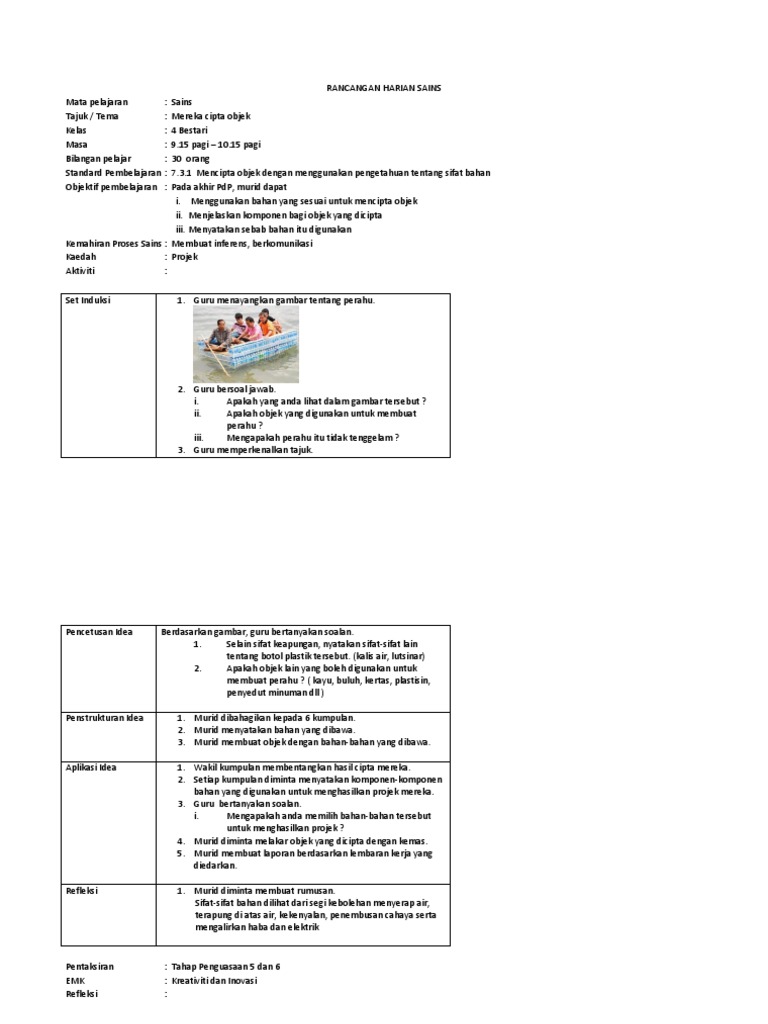 Rancangan Pengajaran Harian Rph Sains Tahun 4 Kssr Pdf Free Download
