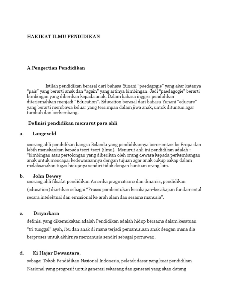Doc Pengertian Pendidikan Menurut Para Ahli Dwi Fajriati Academia Edu