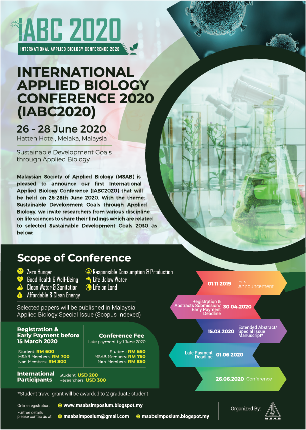 The conference is scheduled on 26th 28th june 2020 at hatten hotel melaka malaysia under the theme sustainable development goals through applied biology. International journal of engineering research and technology ijert journal ranking. Malaysian applied biology is listed in the databases and indexed in thomson reuters master journal list elsevier mycite biosis zoological records udledge life science index cnki j gate and cabi. Malaysian applied biology is indexed in scopus since issue 41 1 2012.