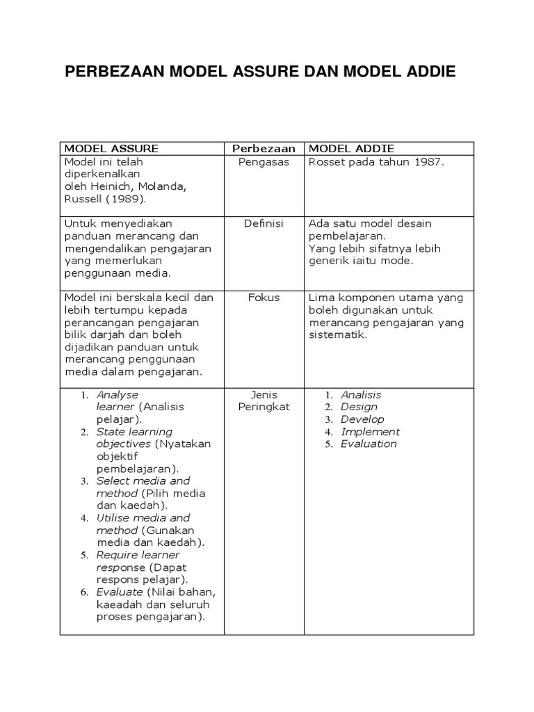 Hafizhah Suzana Hussien Perbandingan Model Addie Dan Model Assure
