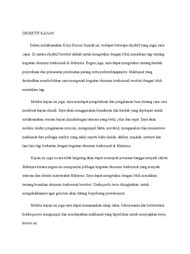 Contoh Objektif Kajian Kerja Kursus Sejarah Pt3 2018