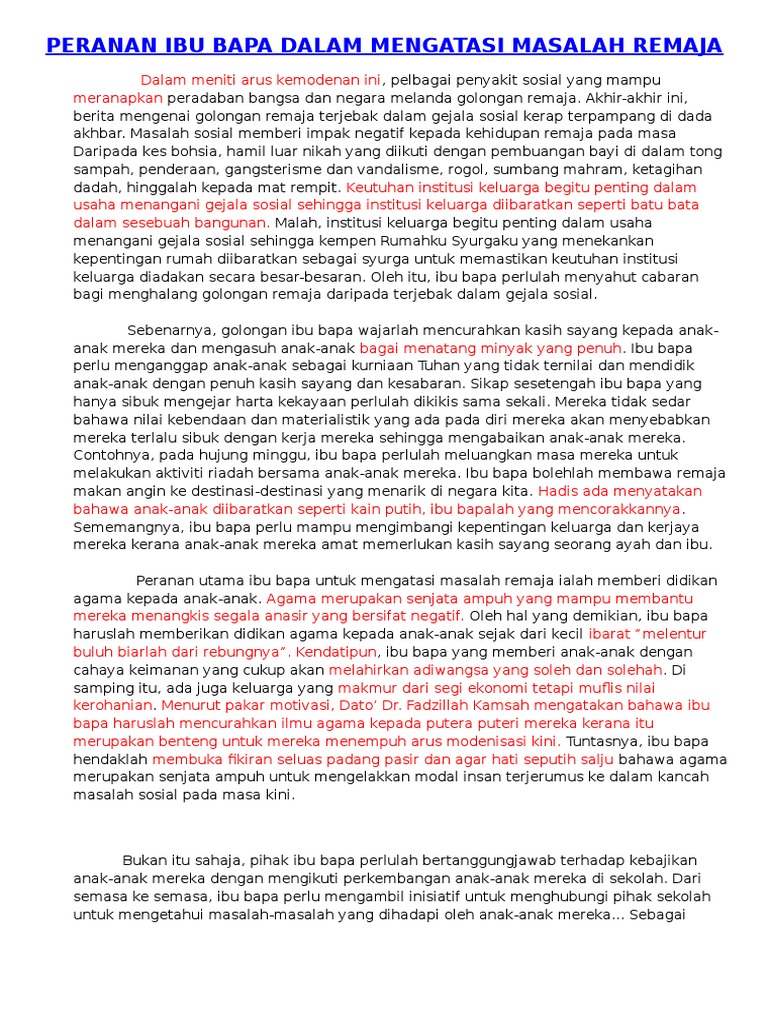 Peranan Ibu Bapa Dalam Menangani Masalah Sosial Remaja