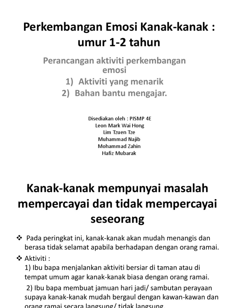 Perkembangan Emosi Kanak Kanak Umur 1 2 Tahun