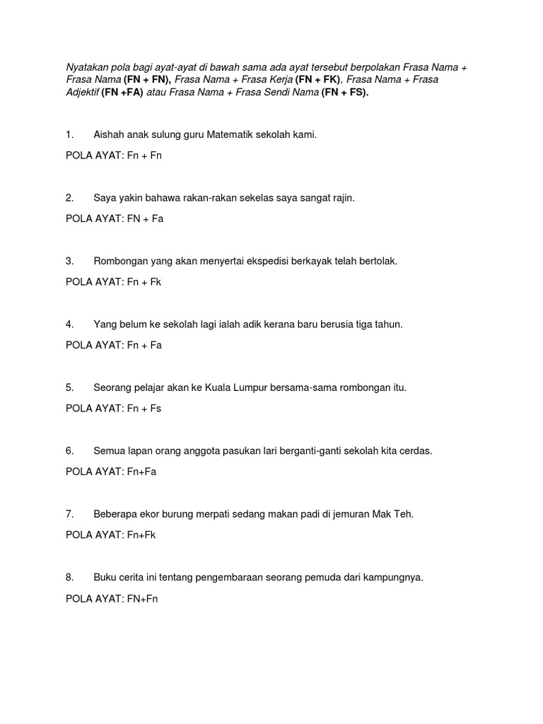 120 Soalan Latihan Pola Ayat