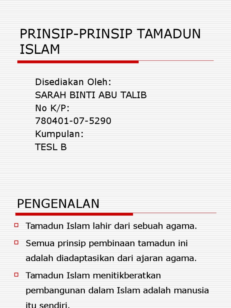 Prinsip Prinsip Tamadun Islam Disediakan Oleh Sarah Binti Abu Talib No K P 780401 07 5290 Kumpulan Tesl B