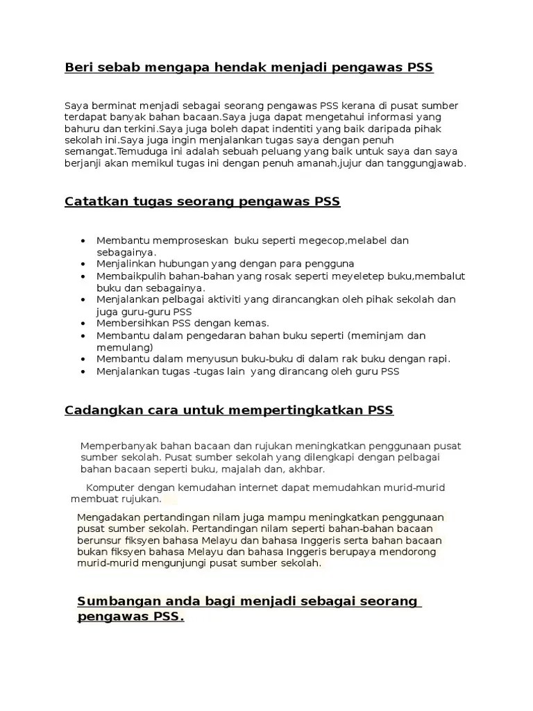 Beri Sebab Mengapa Hendak Menjadi Pengawas Pss Cute766