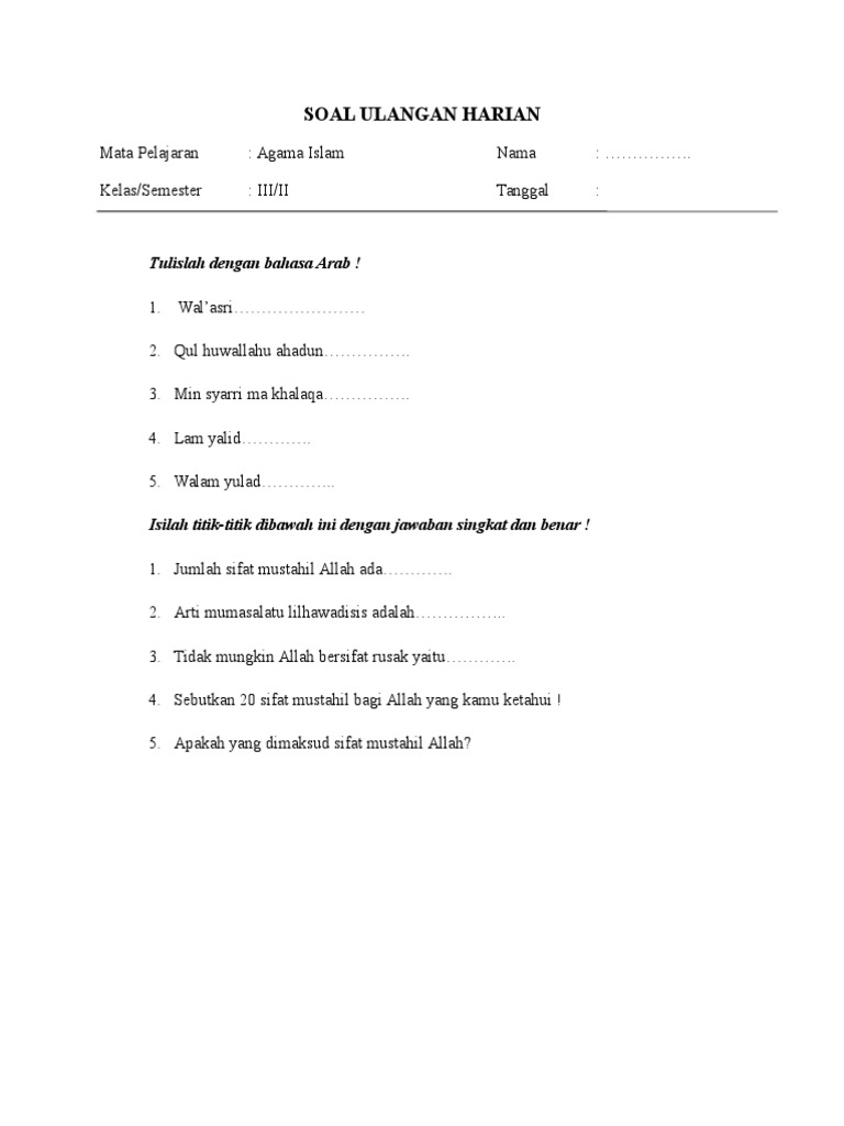 Sifat Wajib Dan Mustahil Bagi Allah Beserta Artinya Brainly Co Id