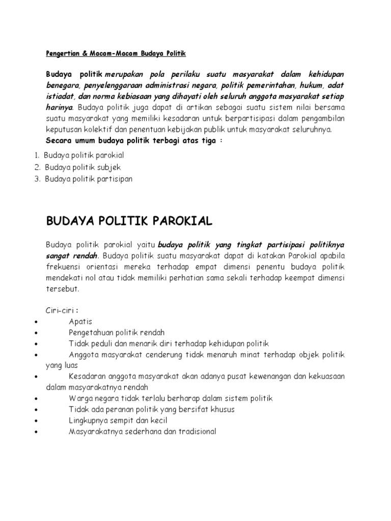 Macam Macam Budaya Politik Pengertian Ciri Tipe Contohnya