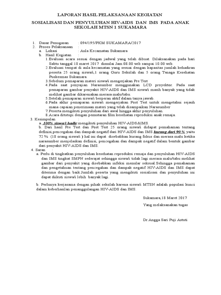 Laporan Hasil Pelaksanaan Kegiatan Sosialisasi Dan Penyuluhan Hiv