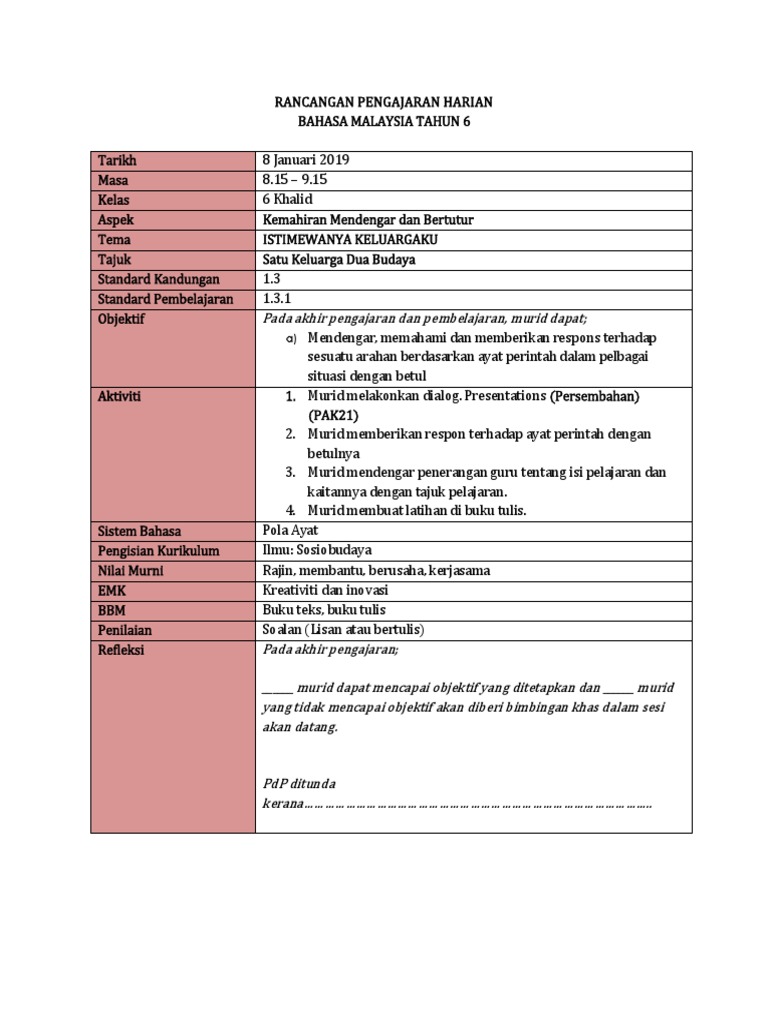In 2020 Contoh Nilai Murni Dalam Rph In 2020