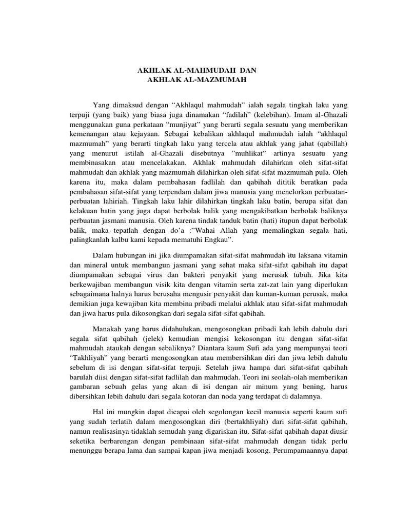 Doc Akhlak Mahmudah Dan Akhlak Mazmumah Yecmi Malasari Academia Edu