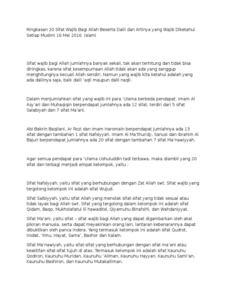 20 Sifat Wajib Bagi Allah Dan Pengertianya Lengkap Nazeefah Com