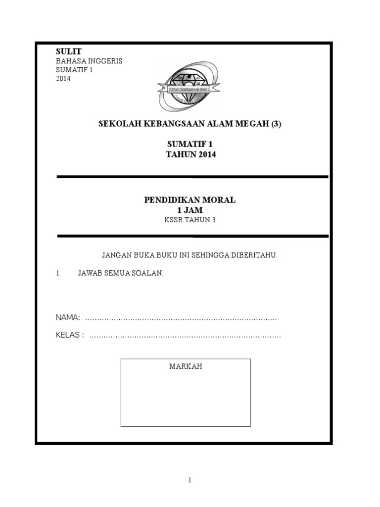 Soalan Pendidikan Moral Tahun 1