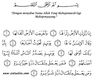Lafadz Surat Al Zalzalah Ayat 1 8 Arab Latin Arti Dan Isi Kandungan Satudoa Com