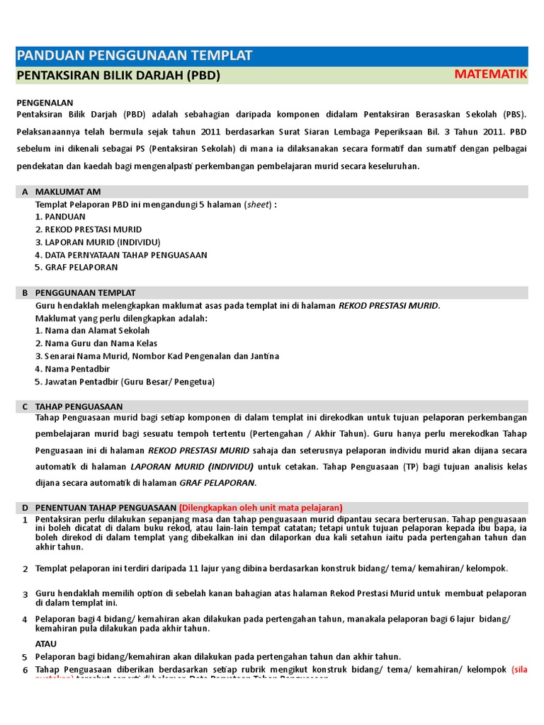 Panduan Penggunaan Templat Pelaporan Pentaksiran Bilik Darjah Pbd